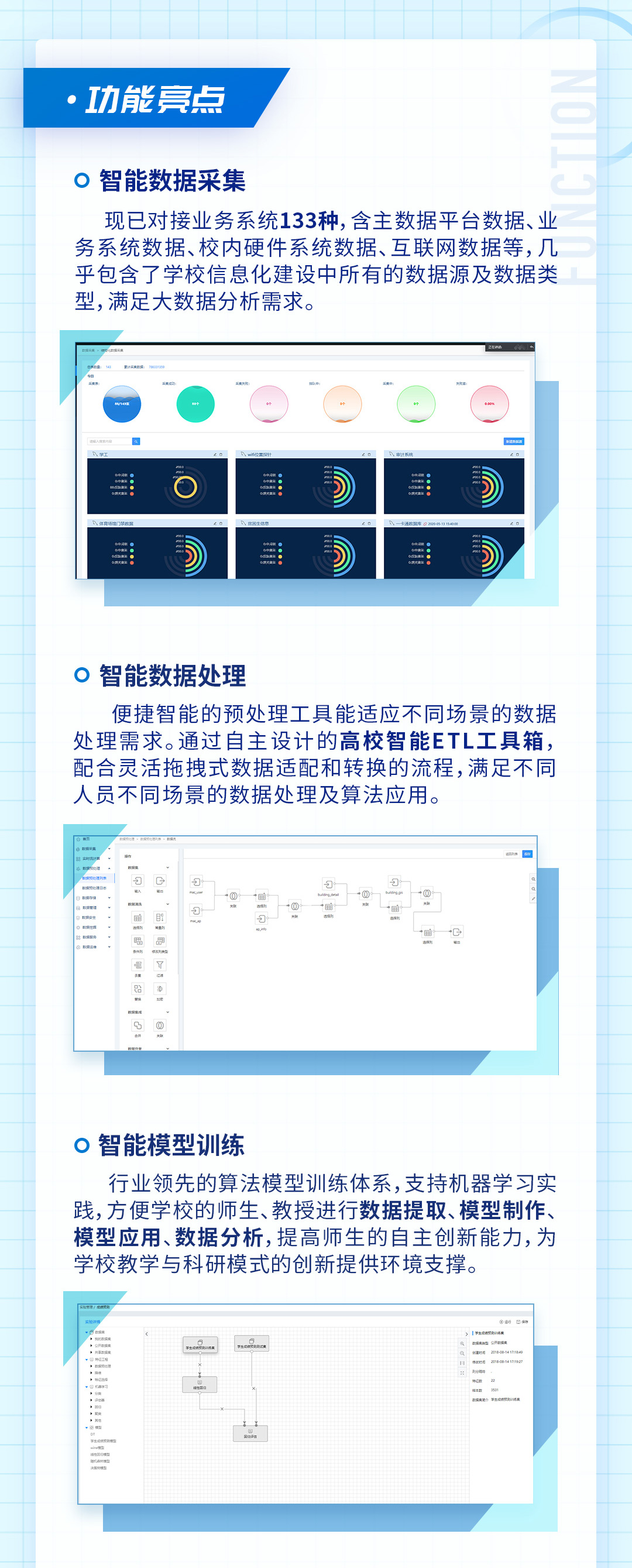 AIoD教学大数据智能分析辅助决策平台是基于“大数据技术+智能推送”的教学大数据应用平台,平台对教学全流程数据多维度分析,实现了个性化...