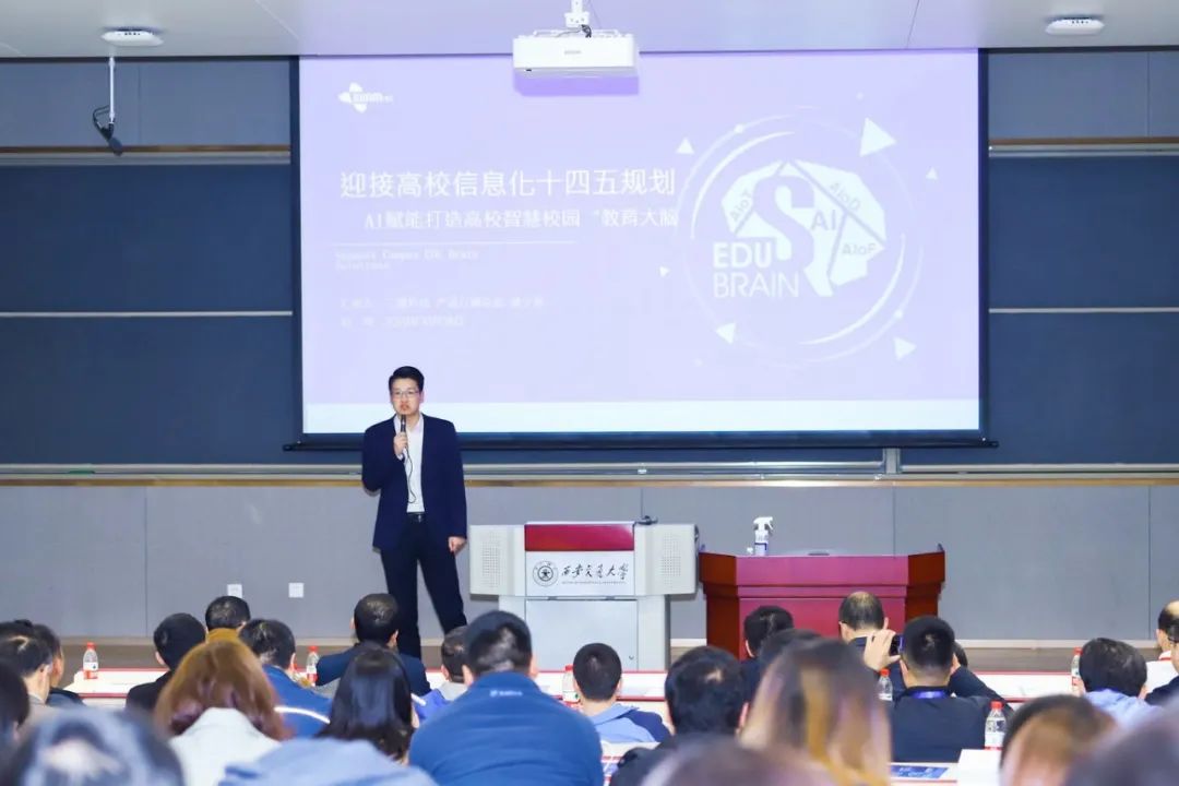 10月18日,以“5G赋能新发展,新基建创造新未来”为主题的首届新基建暨5G+智慧教育高峰论坛在中国西部科技创新港举行。在智慧校园建设分论坛上,三盟科技产品行销总监徐少亮带来题为“迎接高校信息化十四五规划—— AI赋能打造高校智慧校园‘教育大脑’”的报告,分享校园“教育大脑”整体解决方案,助力高校“十四五”信息化建设。