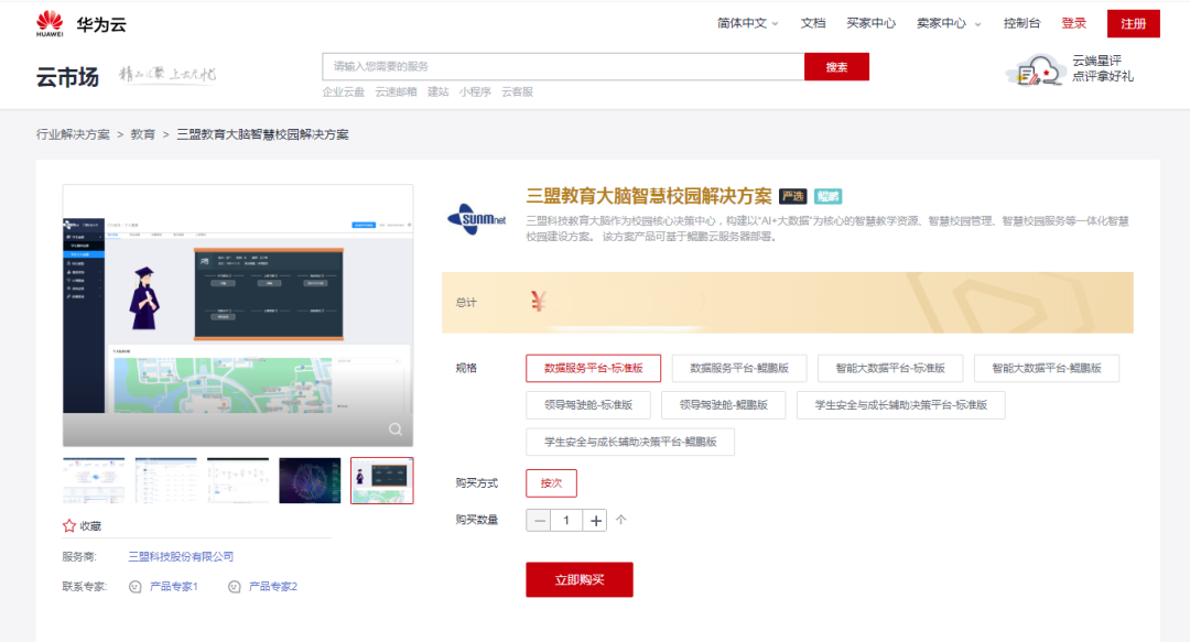 在深化与华为的合作进程中,三盟科技又迈进了关键一步。近日,三盟科技携手华为推出的联合解决方案(三盟科技教育大脑智慧校园解决方案)及其产品实施服务成功入驻华为云严选商城。此举意味着双方的合作已深入到包括生态、解决方案、项目、产品等全方位领域。
