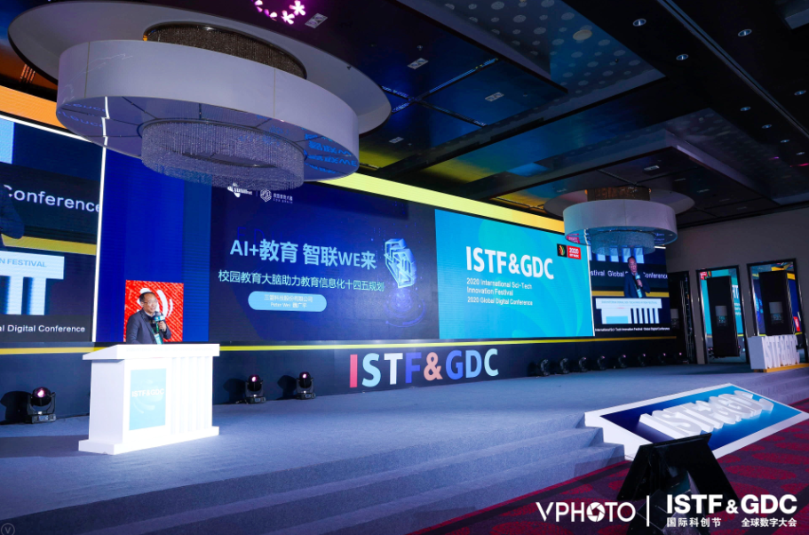 作为教育行业AI+大数据的领军企业,三盟科技产品已服务千余所高校,拥有丰富的产品落地经验。本届科创节,三盟科技人工智能应用研究院院长魏广平博士受邀出席,并分享了题为“AI+教育 智联WE来——校园教育大脑助力教育信息化十四五规划”的主题演讲,为与会嘉宾带来智慧校园的整体建设思路。