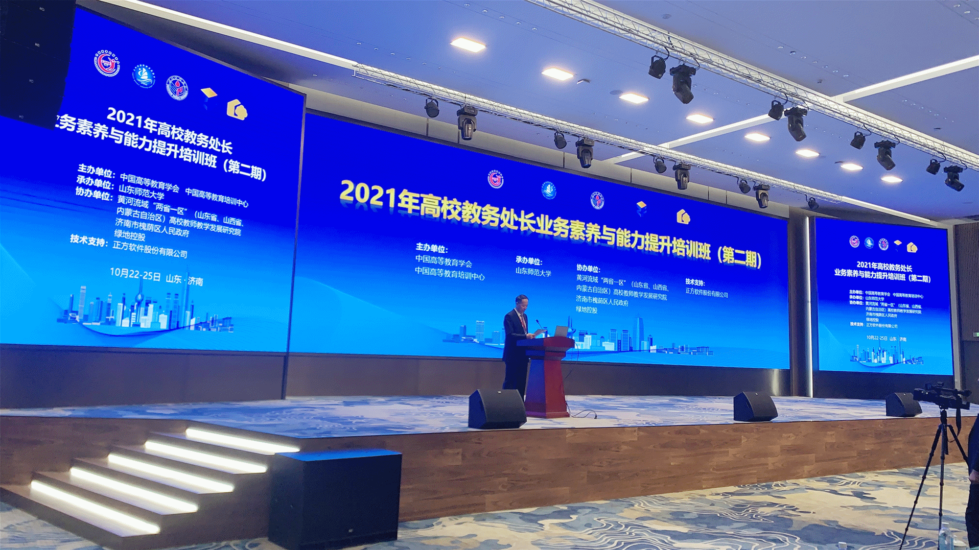 10月23-24日,由中国高等教育学会、中国高等教育培训中心主办,山东师范大学承办的“2021高校教务处长业务素养与能力提升培训班(第二期)”在济南成功举办。中国高等教育学会副会长、教育部高教司原司长张大良,中国高等教育学会副秘书长王小梅;山东省政协副主席、校党委书记唐洲雁,副校长满宝元,山东省教育厅高等教育处处长李霞等出席开班仪式。教育部高等教育司副司长武世兴线上做主旨报告。来自北京、天津、河北、山西、山东等省市100余所本科高校的近200多名教务处负责同志通过线上线下相结合的方式参加培训。