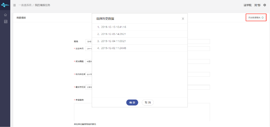 教师在填表时只需点击“历史数据填充”,选择历史数据,系统自动匹配完成填充。后续仅需完善剩余的主观内容即可,让你的填表工作从此“开外挂”。
