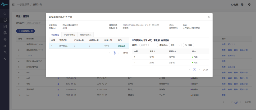 行政老师发起填报任务,还要靠电话or邮件通知,甚至打印纸质表单给个人?工作推进难,成效还不理想?一表通从源头上帮你解决,自上而下推进线上全流程填报。