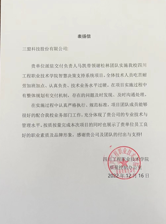 迄今,三盟科技已为全国千余所院校的教育数字化建设助力,赢得用户的赞誉。我们深信,只有好的产品和服务才是企业的立身之本。