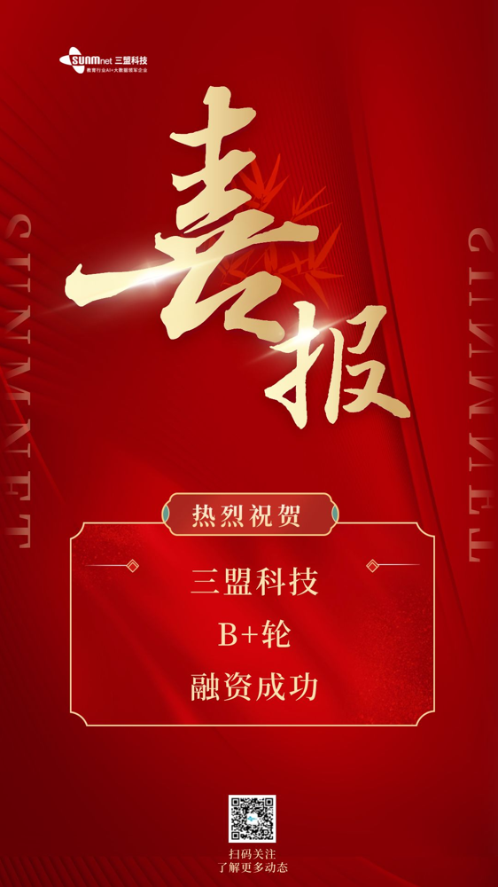 自2020年9月份三盟科技股份有限公司(简称:三盟科技)完成由SBI学大基金、兆恒投资、基因资本以及个人投资者共同参与投资的B1轮融资后。今年3月份,三盟科技完成B+轮融资,本轮融资将加速推进三盟科技的高校产品标准化、高校SaaS产品开发、普教产品开发、普教市场推广及未来IPO战略进程。