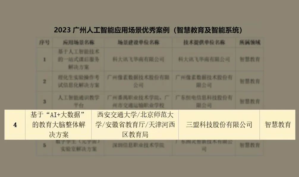三盟科技“基于‘AI+大数据’的教育大脑整体解决方案”作为智慧教育领域的参选案例,依托突出的应用成果,成功登榜!