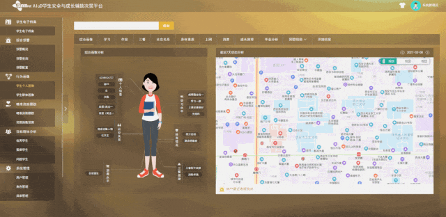 同时,基于AI先知先觉的预警优势与大数据强大的分析能力,实现学生心理异常预警、失联预警、夜归预警、逃课预警,助力学校管理者深度感知学生学习、生活、社交等发展现状,为相关职能部门提供科学决策依据,实现个性化推荐教学服务,有效引导学生健康成长。