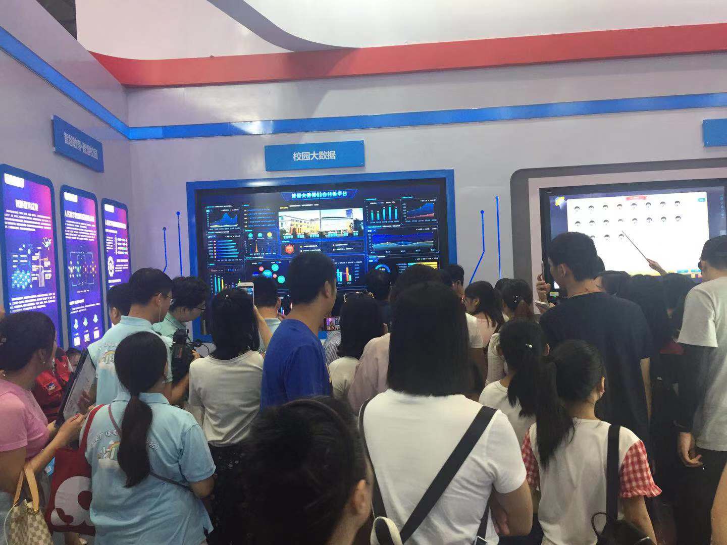 智博会展区内,基于大数据、人工智能、物联网等技术的校园大数据在现场够吸睛!校园大数据全面汇集了学校在教学、学习、环境、管理等方面的数据资源,综合构建起多维校园大数据体系,可实现数据统计分析、趋势预测、异常预警,真正为学校领导和管理部门监督、考评、反馈、改进提供数据支持和决策支撑。