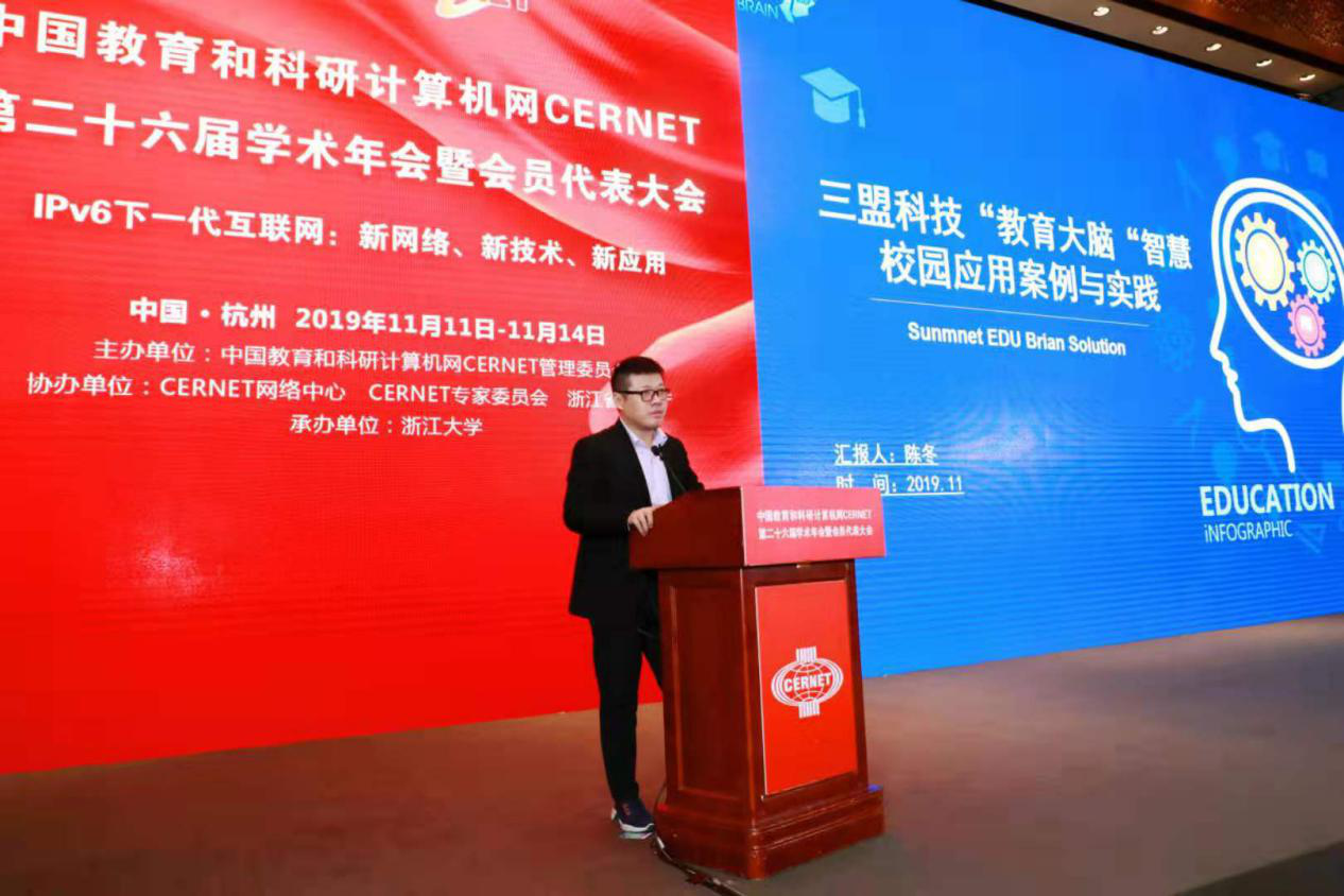 2019年11月14日,由中国教育和科研计算机网CERNET管理委员会主办,CERNET网络中心、CERNET专家委员会、浙江省教育厅协办,浙江大学承办的“中国教育和科研计算机网CERNET第二十六届学术年会暨会员代表大会”在杭州圆满落幕。三盟科技作为教育行业新一代信息技术高科技领军企业,携教育大脑智慧校园整体解决方案(EDU BRAIN)惊艳亮相!