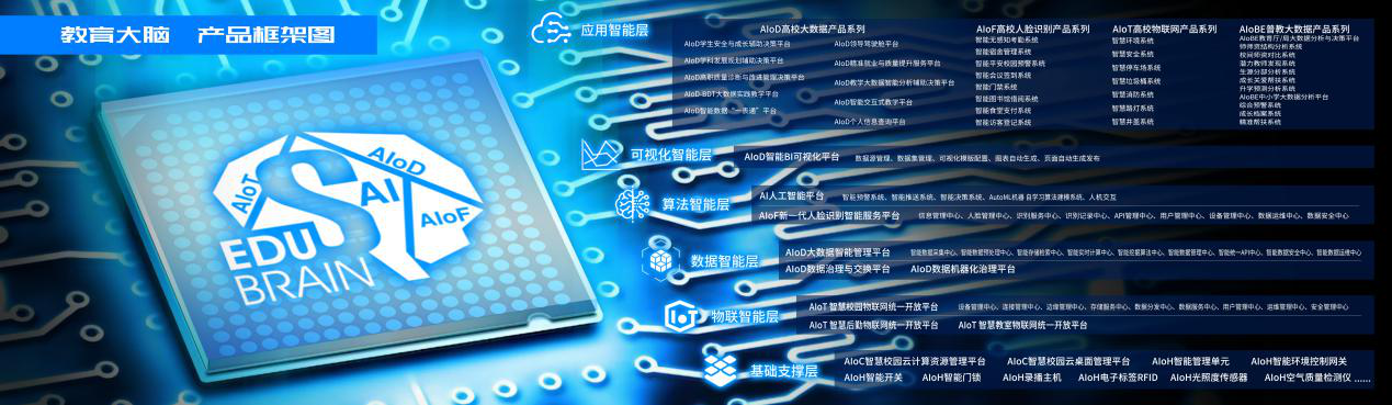 教育大脑智慧校园整体解决方案(EDU BRAIN)是三盟科技倾注6年时间,1.2亿研发投入,融合人工智能技术AI、大数据技术AIoD、物联网技术AIoT、人脸识别技术AIoF四大核心技术与基础支撑层、物联智能层、数据智能层、算法智能层、可视化智能层、应用智能层6大方向产品,与教育场景的深度融合,赋予每一个新兴技术AI人工智能色彩,将应用做的更深入,更加闭环,助力教育单位以“AI+大数据”为核心的智慧校园建设。