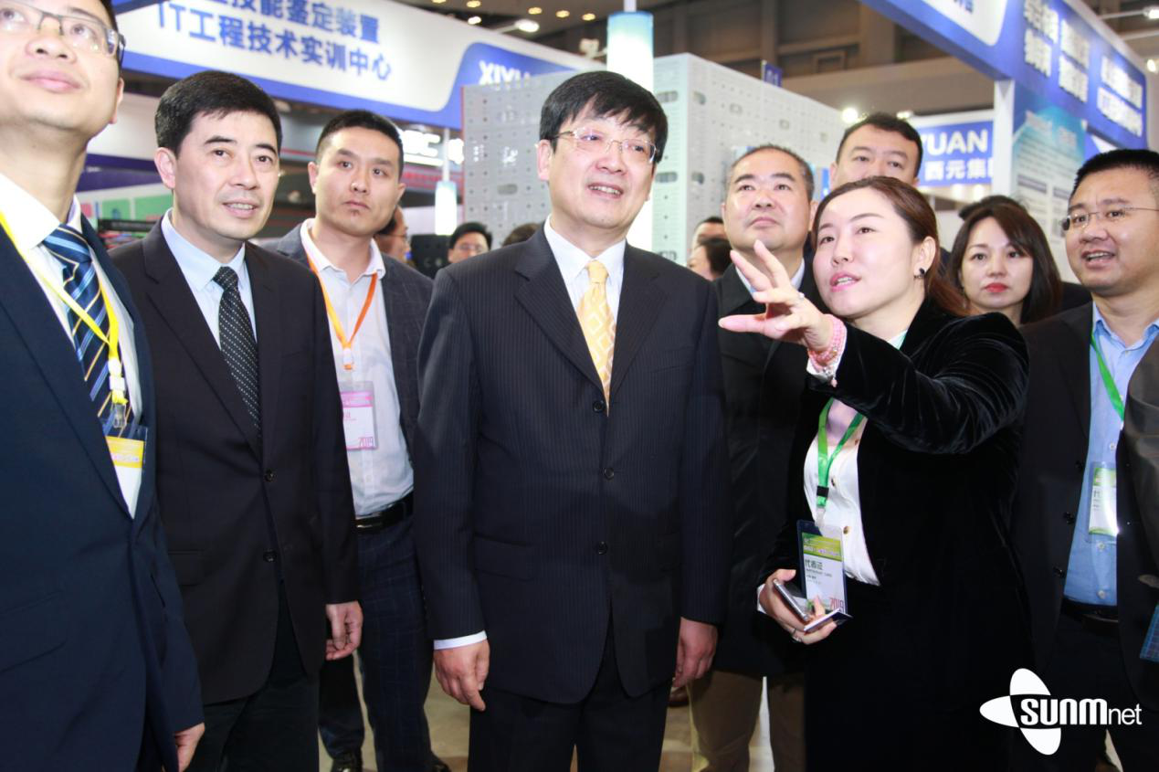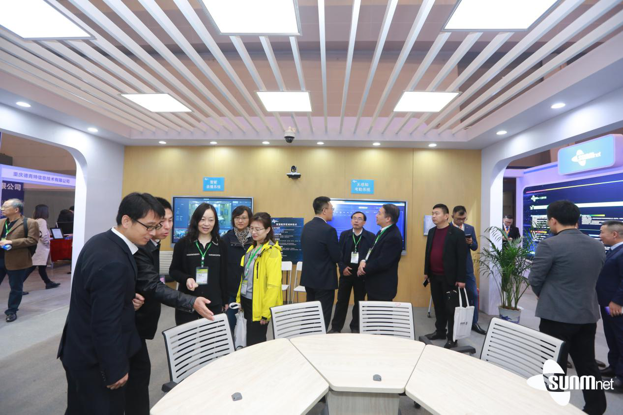 展区现场,教育部职成司谢俐副司长在三盟科技董事长兼CEO王喜英女士等公司领导的共同陪同下,莅临展区参观指导,王喜英董事长表示,目前,三盟科技教育大脑智慧校园整体解决方案(EDU BRAIN)以AI为核心,包括物联网平台、人脸识别平台、大数据平台等,均已融入从事后分析比对,到事前预警预测,可以很好的避免一些未发生的事情。对此,谢俐副司长表示高度认同,做到事前预警预测,很好地体现了新一代信息技术的价值。