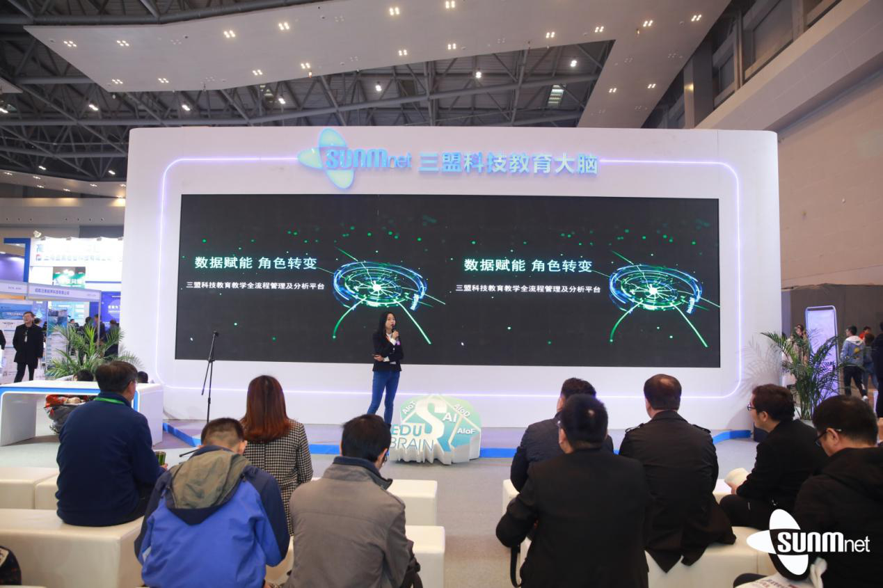 本次三盟科技展区以“教育大脑智慧校园整体解决方案(EDU BRAIN)”为核心,人工智能AI、大数据AIoD、物联网AIoT、人脸识别AIoF四大核心技术产品亮相!