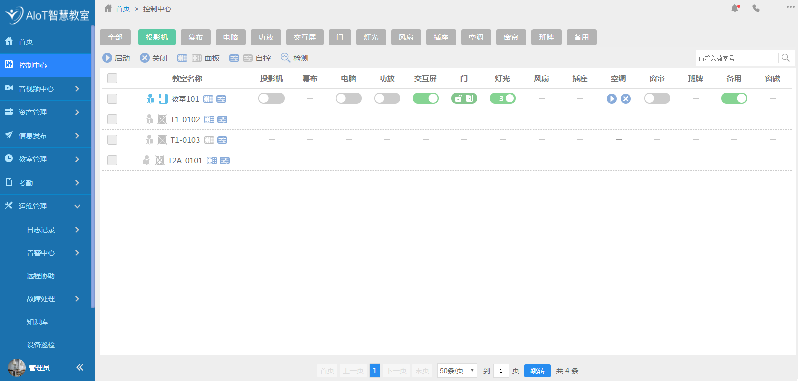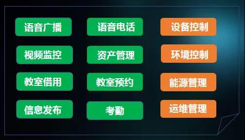 AIoT智慧教室物联网统一开放平台将设备控制、环境控制、能源管理、语音电话、语音广播、视频监控、资产管理、教室预约、教室借用、信息发布、考勤以及运维系统等十二大子系统融入到一个平台,实现一个平台就可以管理多套平台的功能。