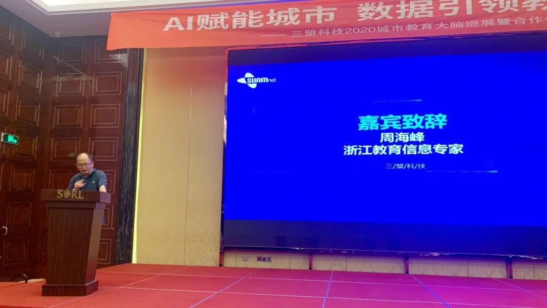 在浙江站上,浙江教育信息化专家周海峰发表致辞,并对城市教育大脑给予高度赞许。他表示,“三盟科技以AI+大数据为核心的城市教育大脑战略,将有力推动全国各城市的教育信息化建设,也为以教育为抓手赋能智慧城市建设带来很好的思考,相信三盟科技优秀的解决方案和丰富的落地经验,将有效助力全国各城市教育信息化发展之路。”