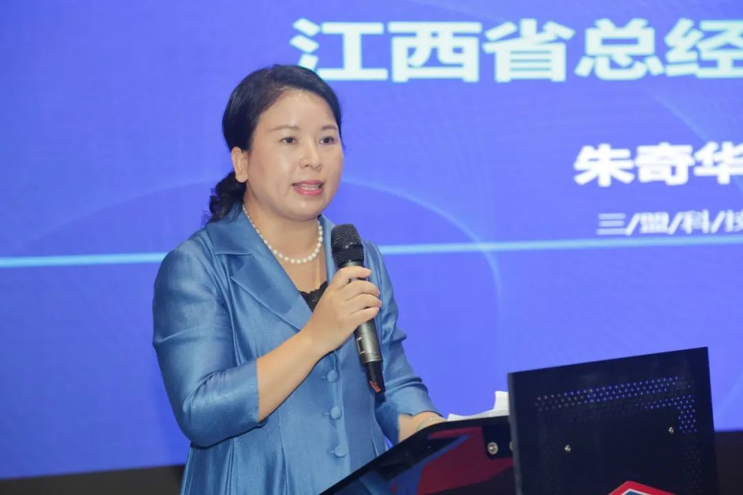会上,江西省总经理朱奇华发表致辞。她表示,三盟科技丰富的行业解决方案和过硬的产品质量,将为与合作伙伴的长期共赢打下坚实基础。