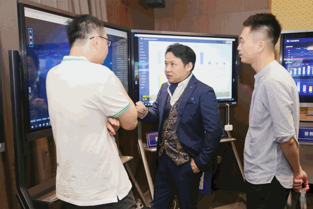 在江西站上,三盟科技普教产品展厅成为技术交流的重要窗口。财大主任、南大主任及高信协会理事长莅临指导,双方就普教产品的平台层部署方案展开深入探讨。在解决方案部经理的陪同下,几位领导还对普教产品应用端的使用监测作了交流体验。