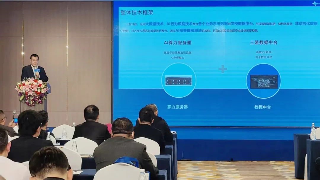 在校园安全管理方面,三盟科技产品拓展总监马良分享了“校园安全管理智能预警预测平台“,该平台旨在帮助学校前置发现校园潜在安全风险,提前化解危机事件,助力高校实现校园安全管理智能化,减少安全风险事件的发生。