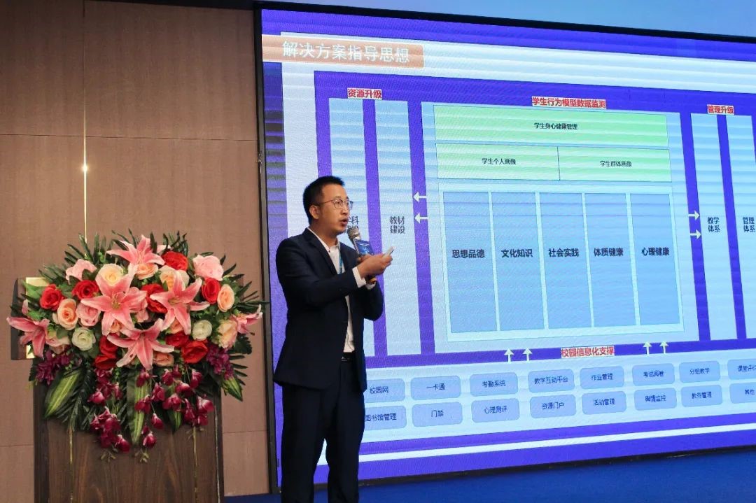 在智慧教学建设方面,三盟科技智慧教学产品总监张强分享了“五位一体智慧教学解决方案4.0“,通过智慧教学环境、智慧教学软件、督导评价、互动教学平台与资源统一门户、教学大数据分析与辅助决策平台的建设,为学校智慧教学提供强有力的支撑。