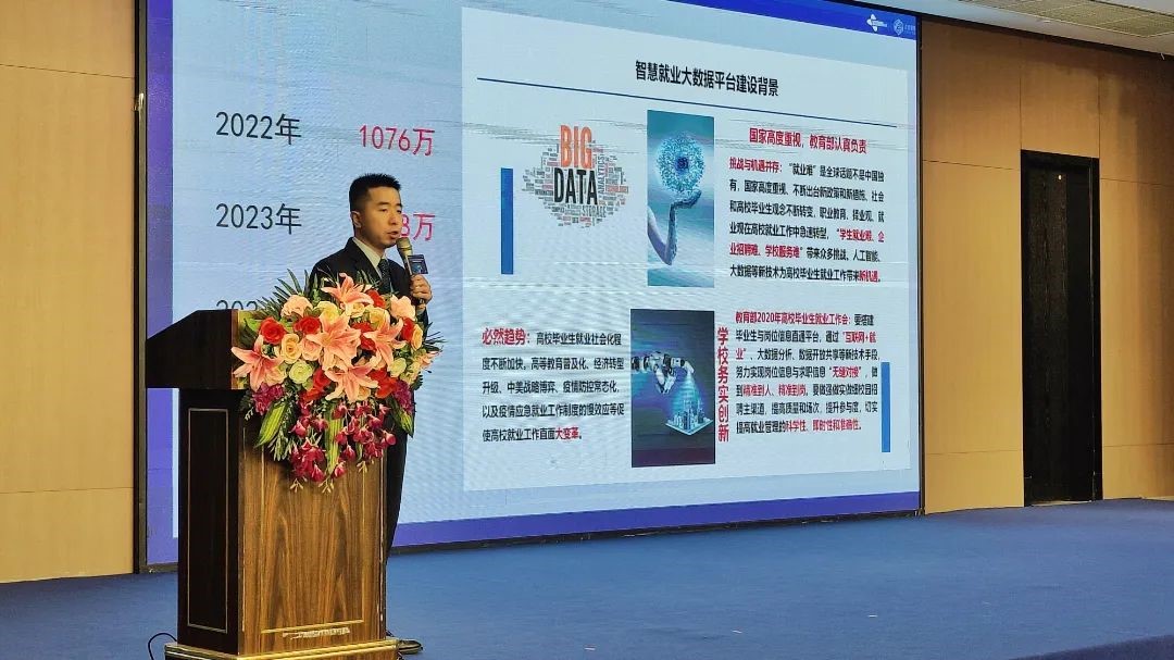 在缓解高校就业方面,三盟科技智就业产品总监宋宁分享了“AIoD智能就业大数据平台解决方案3.0”,平台基于大数据、人工智能和移动互联网等技术,为大学生提供专业测评、海量招聘岗位、精准个人画像,助力提升毕业生就业竞争力。