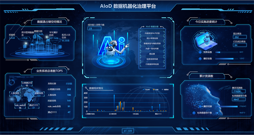 此外,数据中台颠覆性采用AI机器化治理模式。历经500多所院校的迁移学习和训练,使得平台拥有业界难以企及的海量数据字典和数据标准。在治理过程中,能通过云端数据库进行智能匹配,并对异常数据进行提醒,提速审核效率,保障数据准确,比人工治理提高70%-80%治理效率。