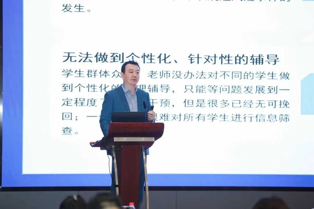 面向学校高度重视的学生心理健康问题,三盟科技现场展示的AIoD学生身心健康智能预警预测平台备受瞩目。平台通过对各业务系统中学生行为数据的全面采集,借助前沿算法建立学生画像、群体画像。在画像的基础上,结合学生近期行为数据提供个性化的预测预警,帮助老师和管理者提前发现学生的异常行为,及时干预疏导,为学生身心健康成长保驾护航。