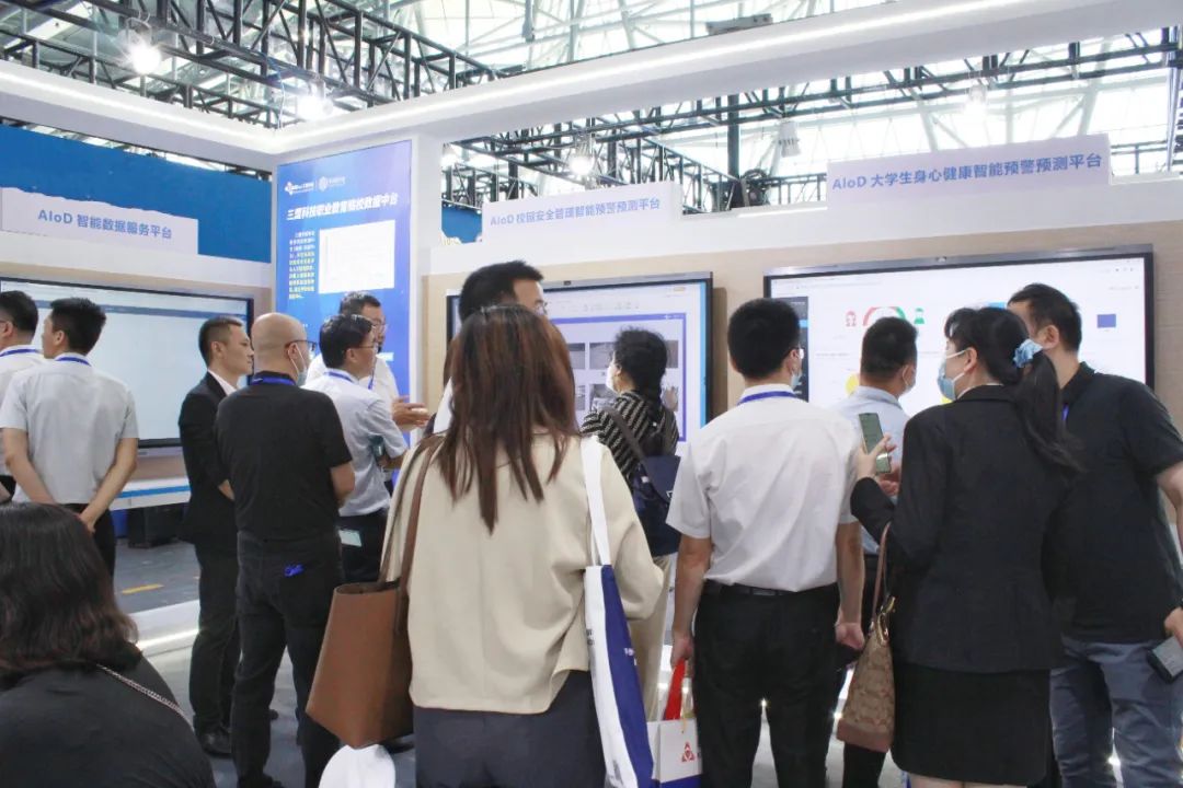 其中,安全预警预测展区和智慧教学展区成为全场关注的两大焦点。在安全预警预测展区,充分体现三盟科技对学校重点关注的学生安全问题的深度关切。该区域展示的AIoD校园安全智能预警预测平台和AIoD学生心理健康预警预测平台获得众多院校嘉宾的重点关注。