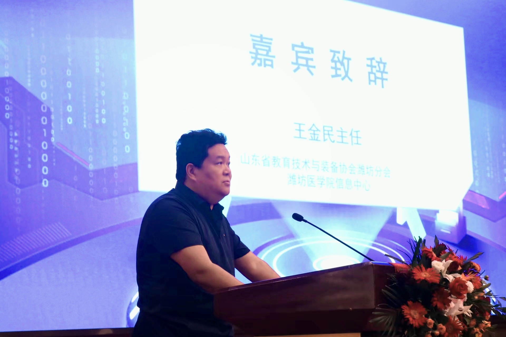 山东省教育技术与装备协会潍坊分会、潍坊医学院信息中心王金民主任在致辞中提到,科技、教育、人才三位一体相互促进,科学技术是推动教育进步与发展的强大动力,无论是ChatGPT还是其它,我们应有的态度是积极地拥抱,而不是消极地逃避。