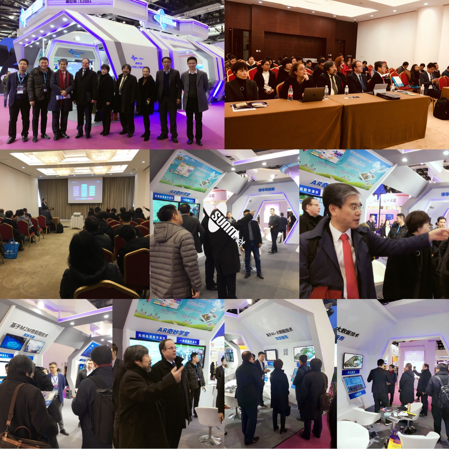 来自中国、美国、日本、韩国四国教育技术协会以及人工智能协会的会长莅临三盟科技展位交流,并对三盟学工大数据的学生行为轨迹分析表现出了浓厚的兴趣,美国会长Mr.Gary表示三盟对大数据的教育应用已经领先于众多美国高校的建设水平。