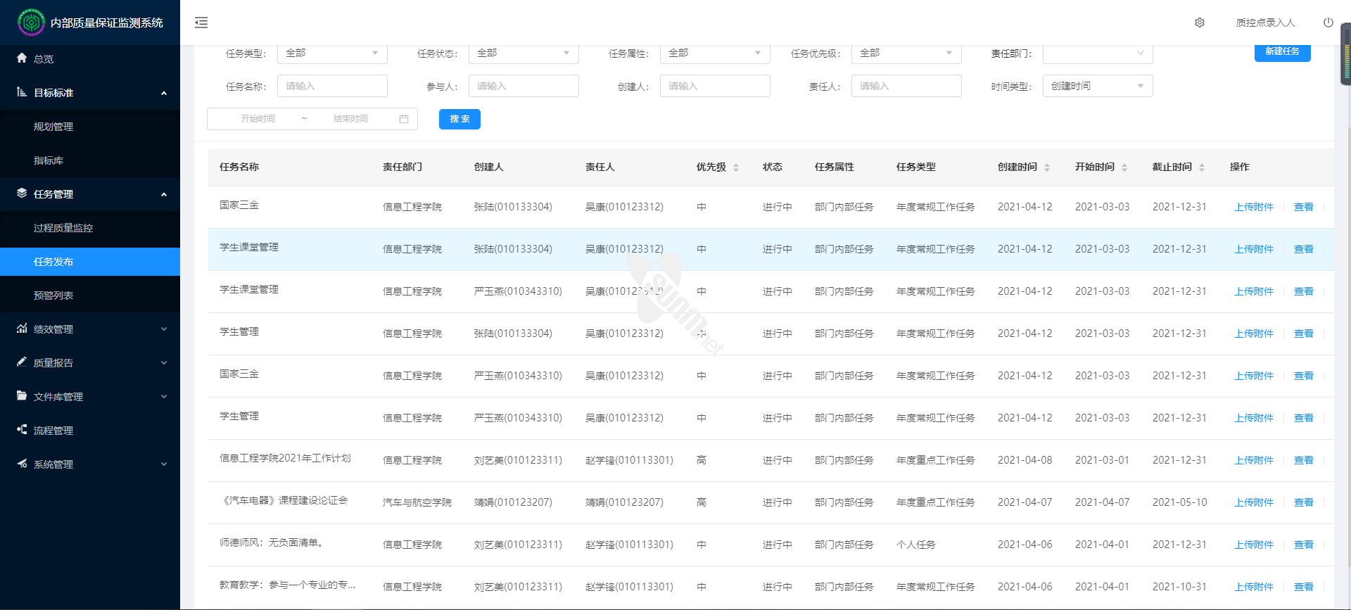 ▲内部质量保证监测系统-任务发布