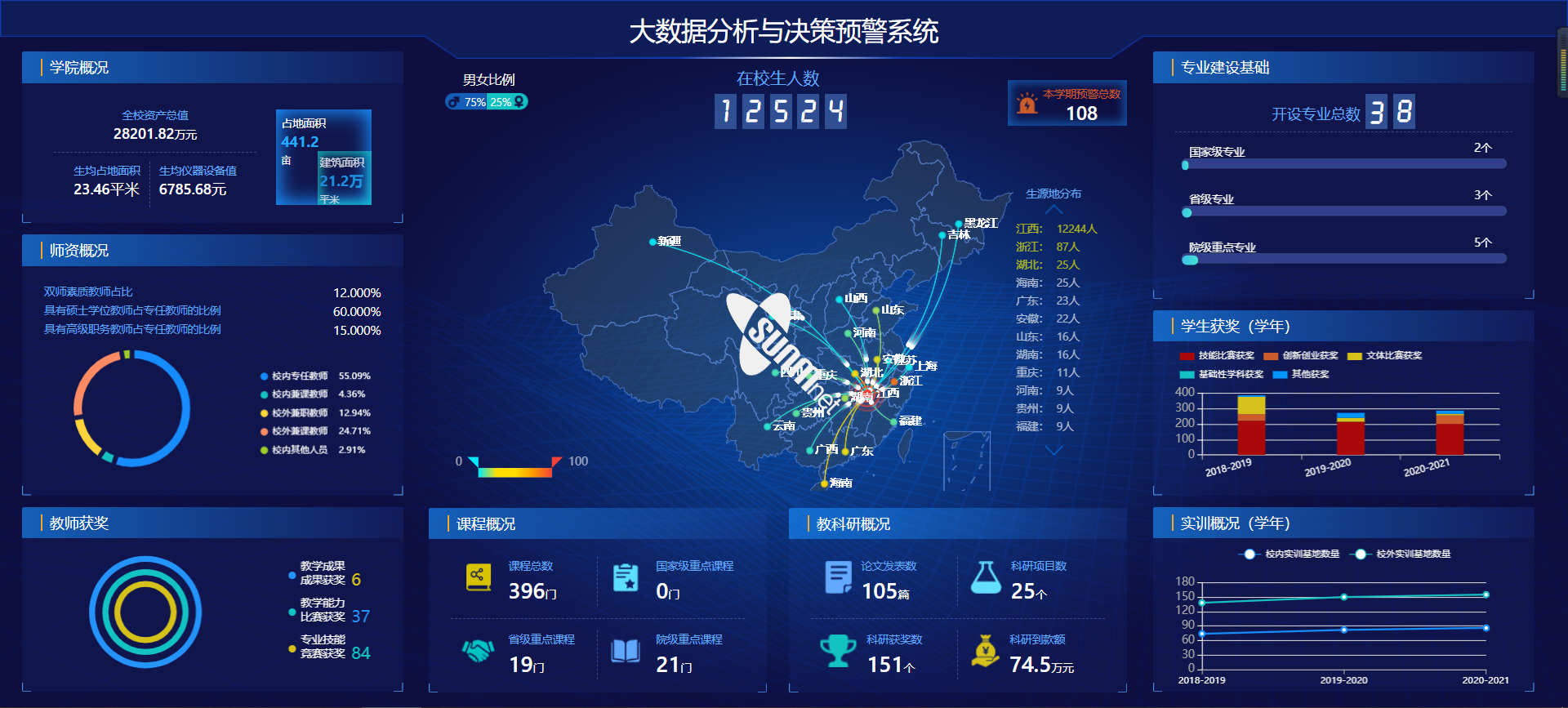 为了把控全校诊改全局,科学调整发展策略,引领诊改工作走向高质量发展的道路。江西制造通过建设大数据分析与决策预警系统,实现“五横”概要数据分析,有利于对诊改工作的全局统筹。