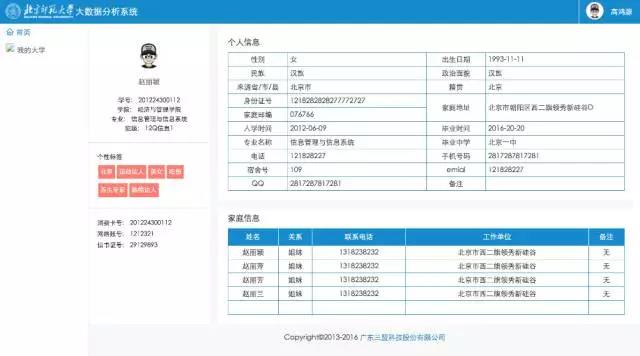 三盟科技为北京师范大学开发的学生类应用从学生角度出发,通过大数据分析实现学校对学生状态的监控,包括以下几个业务系统的开发:
