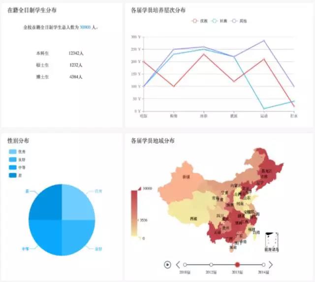 通过整合全校各类基础信息,从宏观层面显示学校整体状况,提供“学校概况”大数据业务,为学校领导的决策提供方向指引和数据支持。
