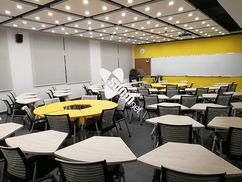 互动课室采取阶梯沉浸式设计,可以有效提高位于教室侧后方学生的注意力,赋予更多被老师关注的机会,使学生自律同时增强和老师互动。