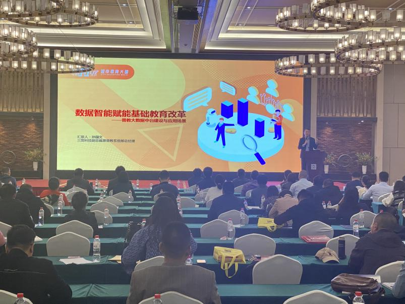 三盟科技助理CEO兼普教系统部总经理孙国文在会上分享了《数据智能赋能基础教育改革——普教大数据中台与应用场景》主题报告,他强调智慧教育已成为中国教育“十四五”规划的核心,在政策驱动下,加快落地智慧教育建设已成趋势。面向教育信息化2.0时代,需要坚持“顶层设计、分步实施、标准先行”的建设原则,打破不同系统、不同终端、不同设备之间的技术壁垒,构建数据统一的大数据底座平台。以此为基础,实现省、市、区(县)、校四级数据联动,从而智能驱动教育质量提升、教育评价改革、教育资源均衡和教育治理、保障校园安全。