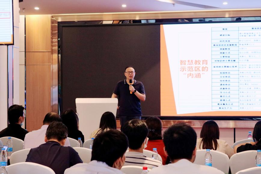 三盟科技华南区技术总监张海鹏现场分享了三盟科技高教“教育大脑”。他以教育信息化政策为切入点,从智慧管理、智慧环境、智慧服务、智慧资源等方面为高校智慧校园建设提供可行性思路。