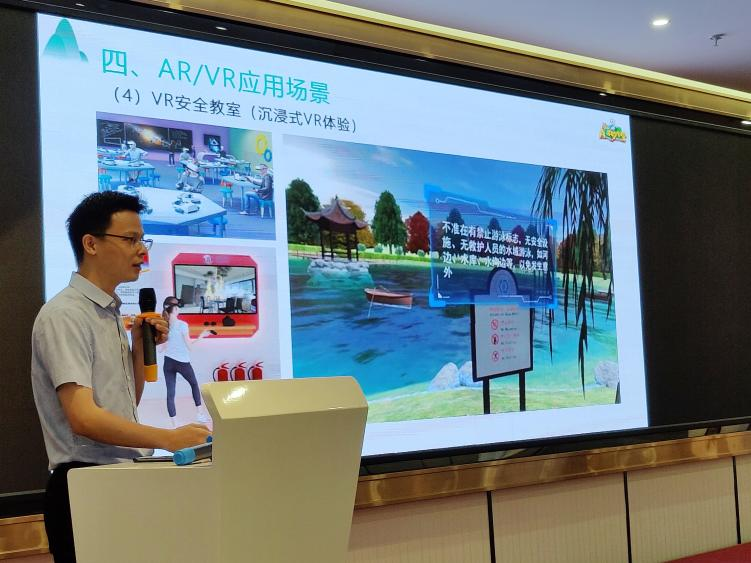 三盟科技普教系统部AR/VR产品总监刘长华带来了“裸眼AR/VR赋能K12智慧教育”主题报告。他从“元宇宙”的概念延伸至AR/VR虚拟现实技术在语文课堂、科学课堂、实验课堂、创客课堂等实际场景的应用,指出AR/VR技术助力现代教学模式深度变革。