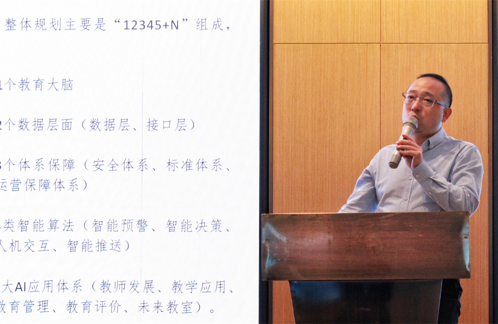 三盟科技普教产品总监赵博带来了普教教育大脑系列产品专题分享,以宏观政策为切入点,讲述了三盟科技是如何高站位布局教育数字化转型新路径,为区域提供智慧教育整体解决方案。